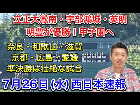 【7月26日(水)西日本速報】立正大淞南(島根)宇部鴻城(山口)英明(香川)明豊(大分)優勝!京都・滋賀・奈良・和歌山・広島・愛媛で準決勝・大阪は5回戦【第105回全国高校野球選手権大会】