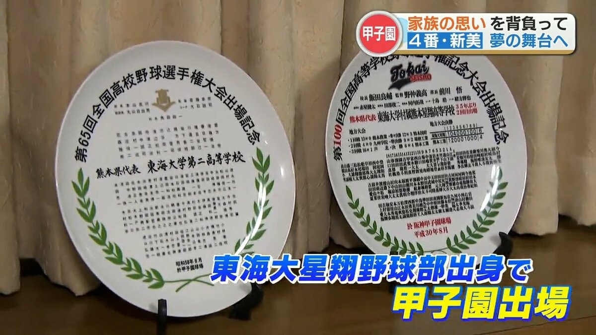 チームの主砲として、熊本大会の決勝戦では4打数3安打の活躍を見せた新美元基(にいみ もとき)選手。そのプレーには『甲子園出場』という自分の夢だけではなく、家族の思いもありました。東海大星翔 新美元基選手(3年)「最後の夏に父と兄の気持ちをかけるというのが大きかったです」父・義之(よしゆき)さんと、兄・翔梧(しょうご)さん共に東海大星翔野球部出身で、甲子園出場を果たしています。しかし、2人とも甲子園のベンチに入ることは出来ず仲間の活躍をスタンドから見守りました。父・義之さん(56)「子どもには野球をさせて、甲子園でプレーをしてもらいたいという思いがずっとありました」兄・翔梧さん(21)「自分が(プレイヤーとして)行けなかった分、甲子園で活躍してほしいなという思いがありましたね」その夢を現実に変えた新美選手は父と兄が立つことのできなかったグラウンドの景色を見ることになります。父・義之さん(56)「(自分は)プレーはすることが出来なかったので、(新美選手が)聖地・甲子園でプレーできるということが言葉にならないくらい嬉しいです」兄・翔梧さん(21)「嬉しくて泣きました」東海大星翔 新美元基選手(3年)「勝ってても負けてても一番は楽しくプレーして、プレーで家族に恩返しできればなと思います」また、もう一人、父親の背中を追って甲子園に挑む選手もいます。
