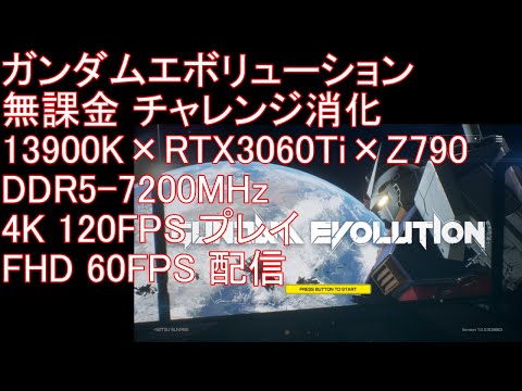 ガンダムエボリューション 無課金 チャレンジ消化 13900K×RTX3060Ti×Z790×DDR5-7200MHz 4K 120FPS プレイ FHD 60FPS 配信!